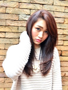 カット:軽やかなレイヤーカットです。前髪は邪魔にならないようぎりぎり耳にかけられる長さで、流れやすく切っています。独自のスライドカットでより、自然な動きを表現しています。