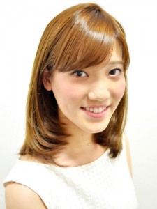 カット:前上がりのレイヤースタイルです。前髪は長めに、流れやすくカットし、顔周りと耳後ろの毛を繋げてレイヤーを入れています。