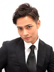 刈り上げ手前のメンズショートスタイル。前髪をおろすことも上げることもできる2WAYなので、オンとオフで切り替えてスタイルを楽しむことができます。ジェルスタイリングでフォーマルにしてワックススタイリングでナチュラルに。