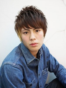 つむじを中心にマッシュルーム風に乾かし、トップを握るようにして風をあてます。ハードワックスを全体の毛先に動きが出るようにつけます。サイドは自然に収まります。