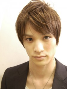 つむじから放射状に乾かし、下から上に持ち上げながら髪の毛全体にワックスを付け、立ちあげてからハチ部を前方向に向って下ろして後ろは真ん中に寄せてトップ下から襟足にかけては抑えます。